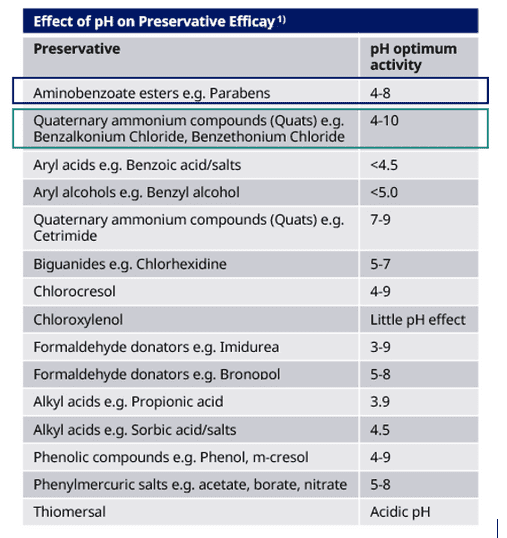 غلظت پارابن ها که به عنوان نگهدارنده در محصولات دارویی استفاده می شوند، مشابه یا کمی بیشتر از غلظت بنزالکونیوم کلراید (BKC) است تا اثر ضد میکروبی مشابهی به دست آید. این غلظت با توجه به پارابن مورد استفاده، معمولاً بین 0.01% تا 0.3% متغیر است.